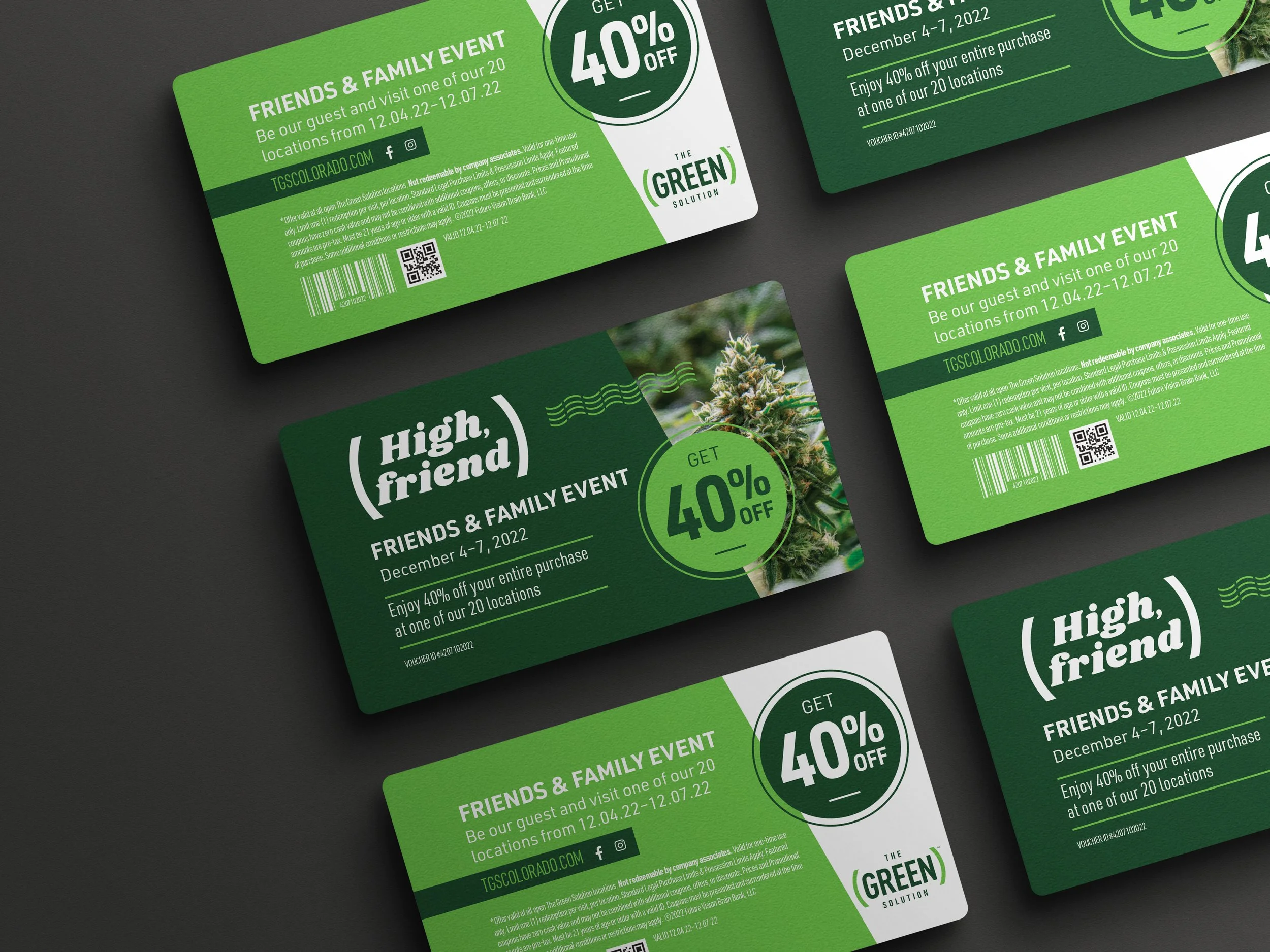 Created a campaign for summer to get customers back into The Green Solution. With over 20 locations the creative and messaging had to be broad enough to capture a large audience of consumers. Kicking the project off with a brainstorm, headlines and copy were developed to explore messaging that promoted a subtle hello to customers who had not visited TGS in the last few months. The message selected was playful and friendly acknowledging people who had once shopped at one of the 20+ stores. The quick message, High friend, could expand across multiple scenarios with the welcoming font introduced to the primary brand. The uplifting photography showcases satisfied customers after a visit to their local TGS.
